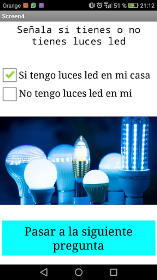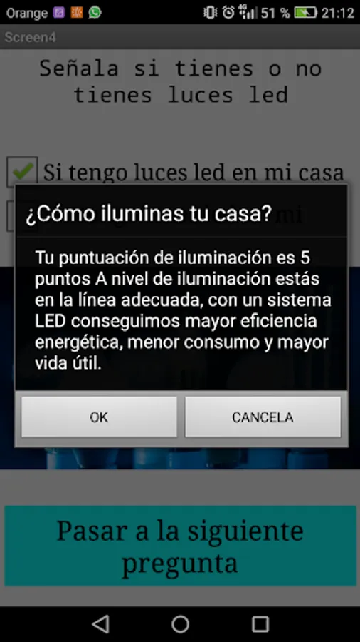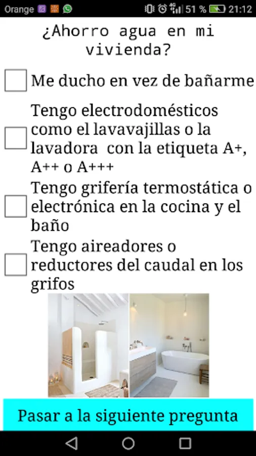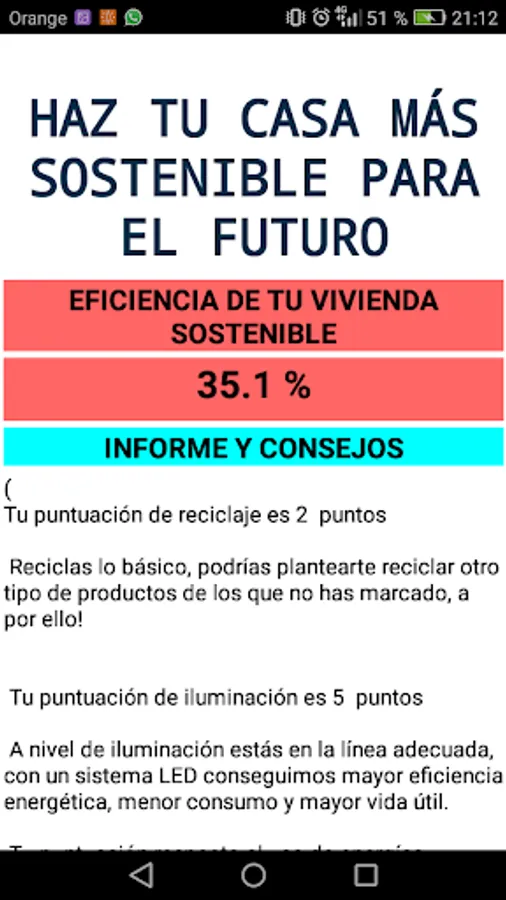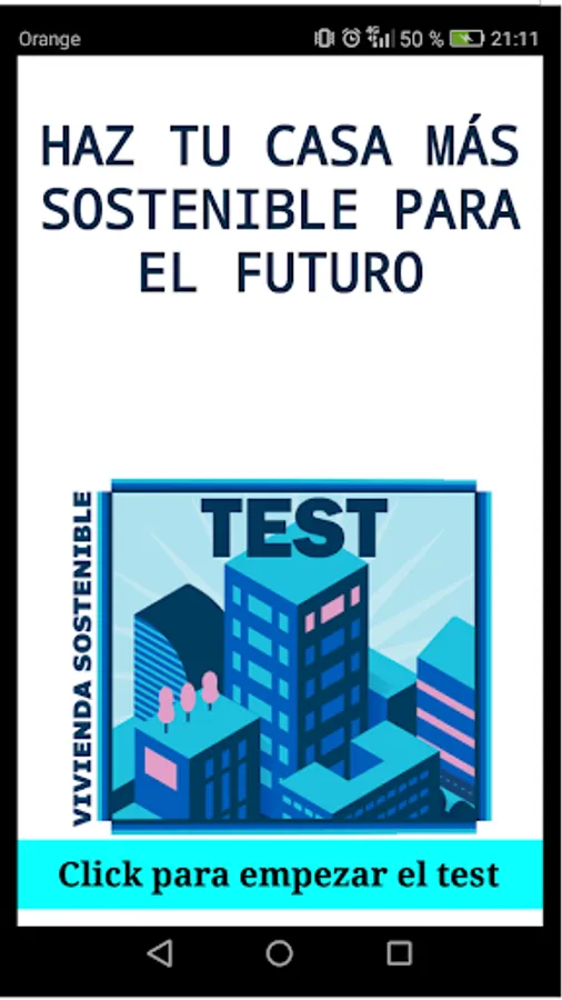 This is a test conducted by students of the Marist College of Palencia. The application consists of a test that the user has to perform with questions about their home and their daily uses in it. After each response the user receives feedback on aspects that could improve their home to make it more sustainable. At the end of the test the user receives a score and a final summary with tips to get a more sustainable home.