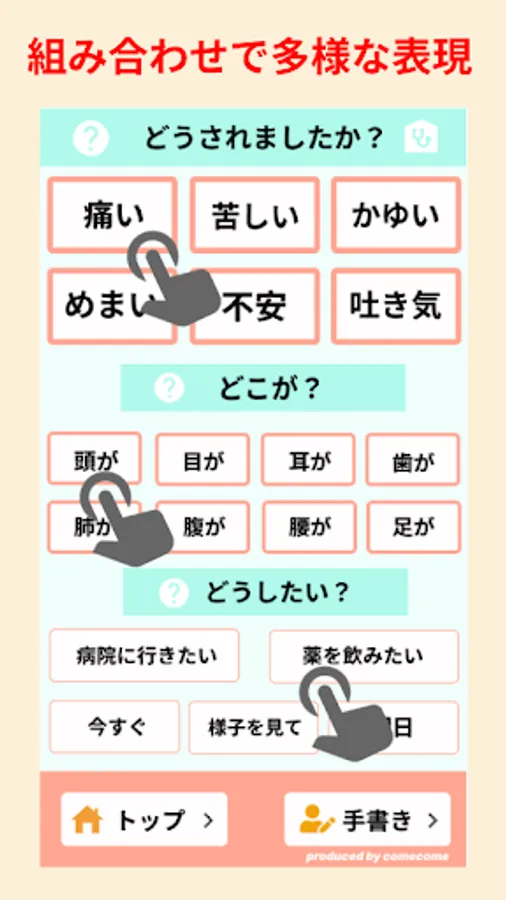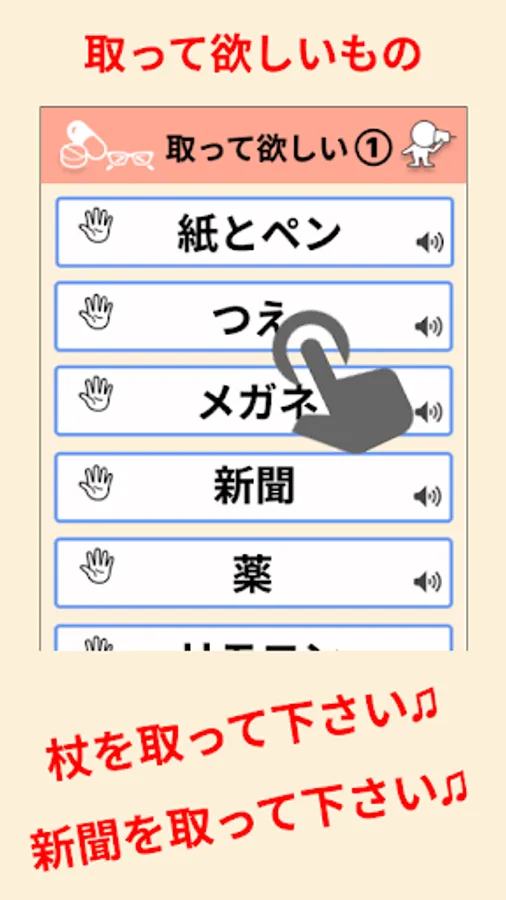 ◆ This app is designed for people with articulation disorders, but it can be used by people who have difficulty speaking, such as people with speech disorders, people who have temporary difficulty in speaking due to illness, etc.