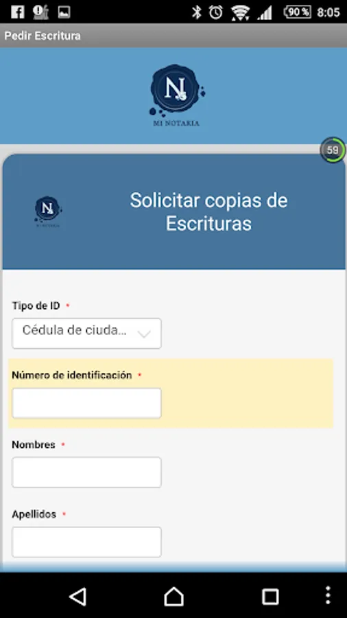 The application allows user interaction for information on services of notaries and also allows the application and online payment services of Civil Registry and request copies of Scripture.