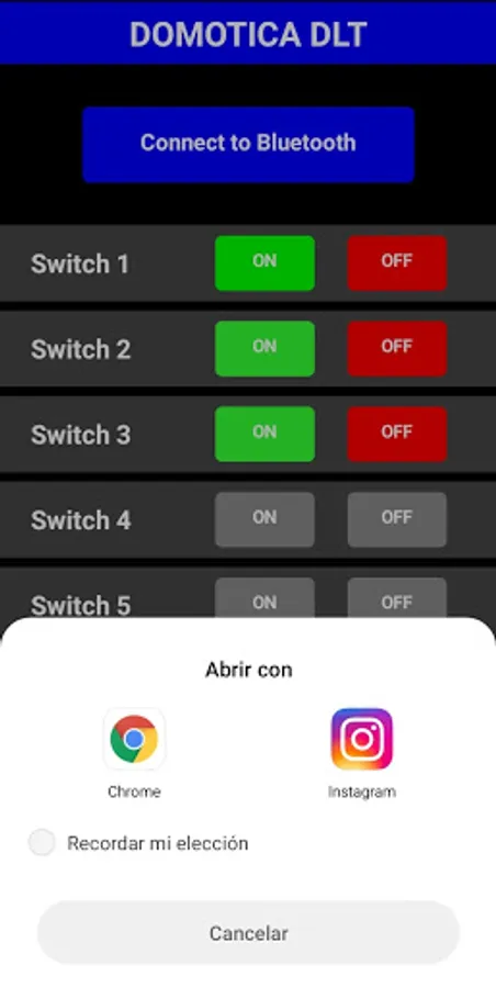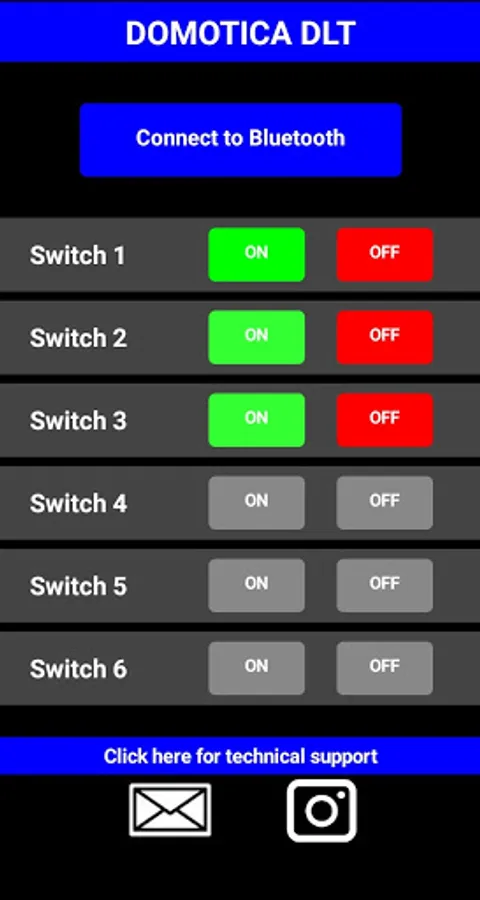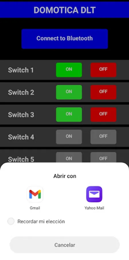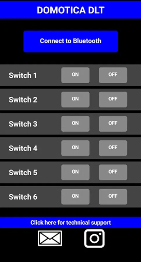 Application to control on and off via Bluetooth of any equipment and system located at home, office and business.