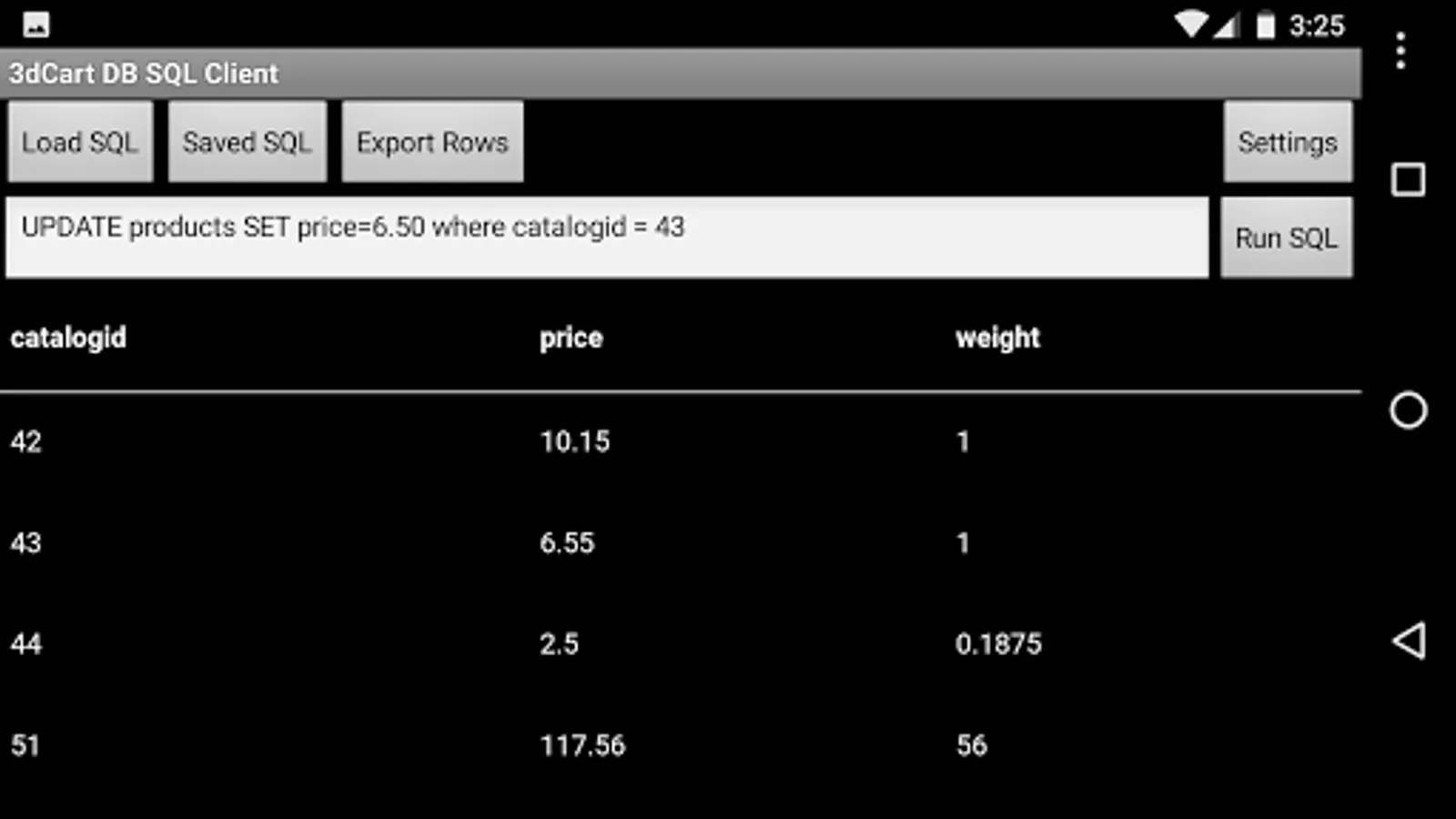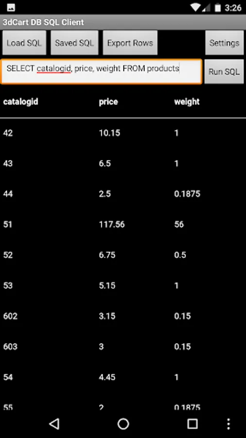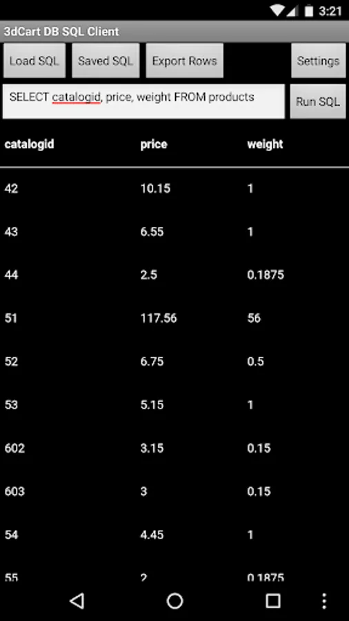 3dCart DB SQL Client allows you to connect to your 3dCart database directly from your smartphone or tablet and can execute SELECT, INSERT, UPDATE and DELETE queries against the database.