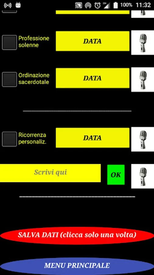 With this app you want to help the various religious orders remember each month the various recurrences of their fraternity. It is possible to memorize the following types of recurrences (date of birth, name day, solemn profession, priestly ordination). In this new version there is also the possibility to customize the recurrences. A button has also been added to enter the name vocally.