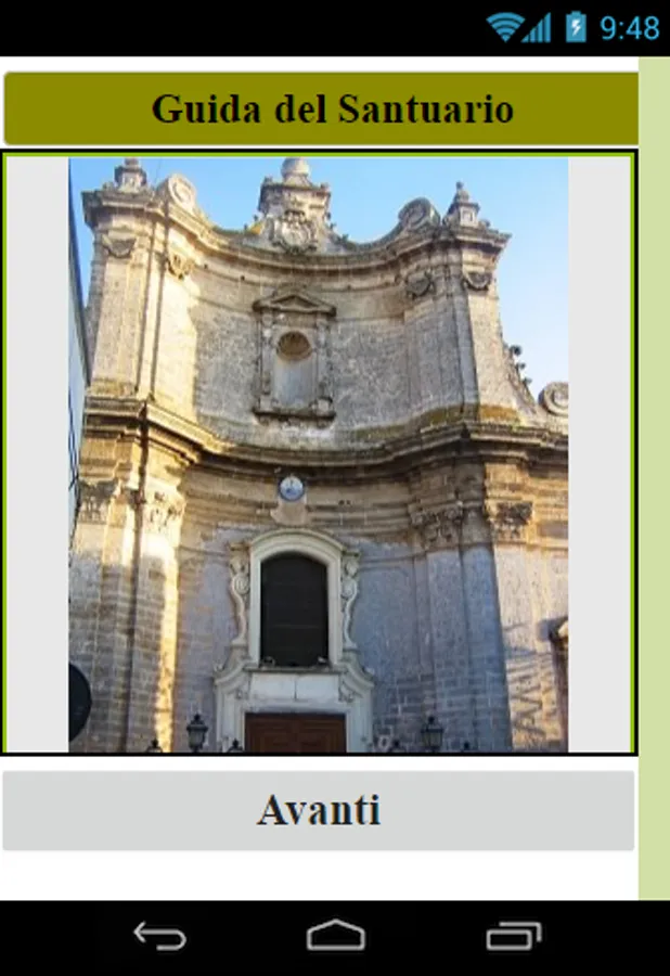 It is a guide that helps the visitors of the Sanctuary to know the places in a simple and above all short way. Few essential news. The aim is that while visiting a place by clicking on the image of the place you can hear short news.