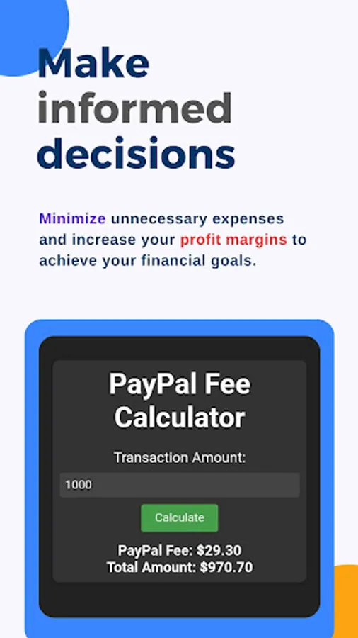 📈 Unravel True Costs: Whether you're a seasoned seller or just starting, knowing the exact PayPal fees is crucial for your business's success. Our app provides a comprehensive breakdown, including fixed and variable fees, currency conversion charges, and applicable commission rates. Stay informed and make well-informed financial decisions to boost your bottom line.