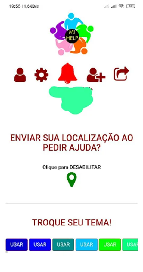 3 - Once everything is set up, in case of emergency, press the button (🛎️), so your contact list will receive your help request (be it audio, video or text message).