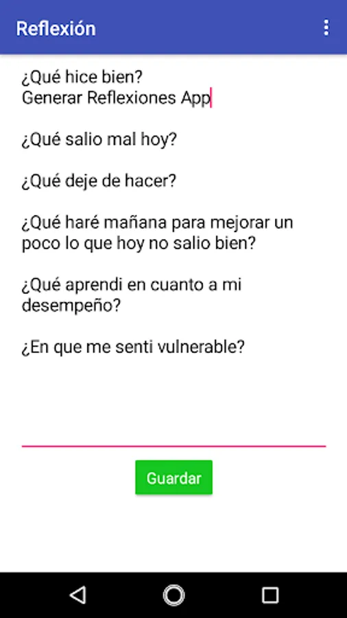 If you need to pause one or more times a day, order your thoughts and ideas, and have a guide to fill a simple reflection that allows you to form the habit of reflection, this app is for you and is completely free without ads, just I would appreciate an email or if you prefer a donation of any size is welcome.