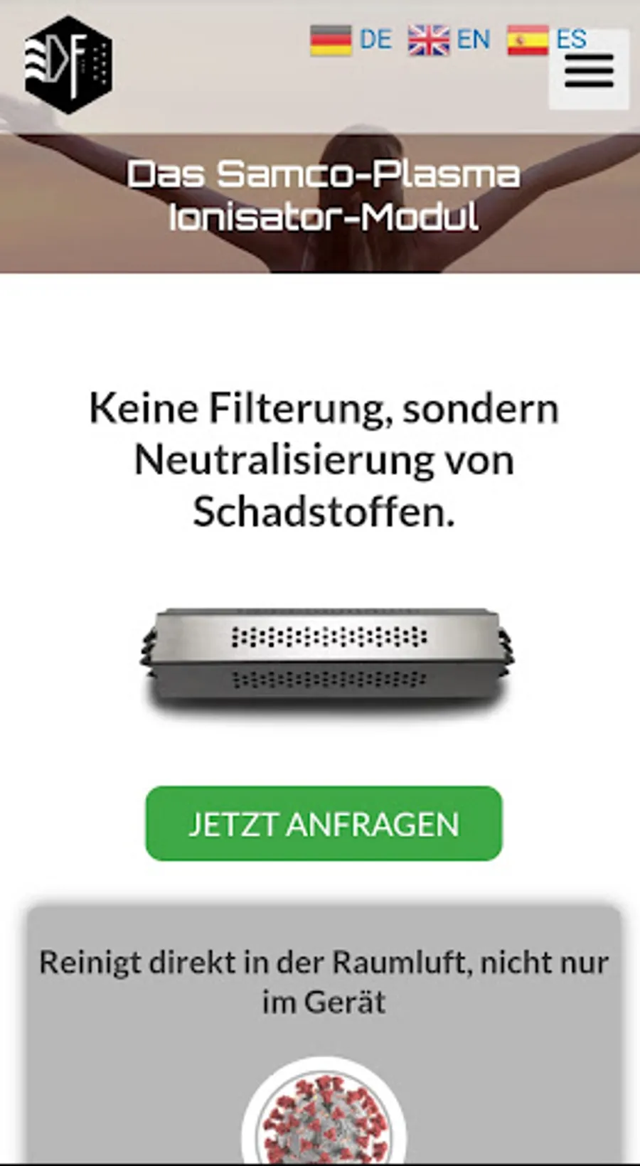 With the products from DF Raumlufttechnik you can now make this dream come true. Through the use of a globally unique, innovative cold plasma module. The unique cold plasma ionizers provide neutralization of viruses and bacteria, no filtering. Clean directly in the room, not only in the device and do not require expensive, cyclical maintenance.