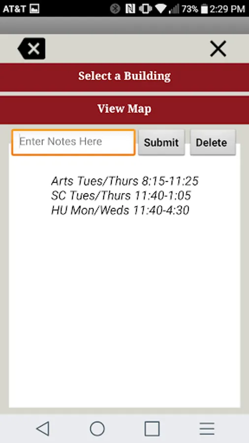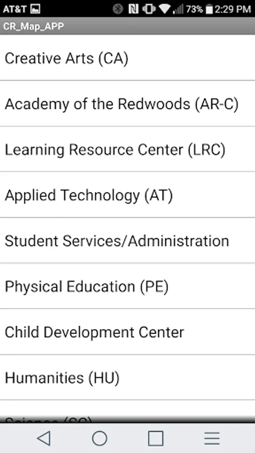 College of the Redwoods Campus and Web Navigation Application lets users navigate to specific buildings and campus locations. It includes direct links to several student services and a notepad.