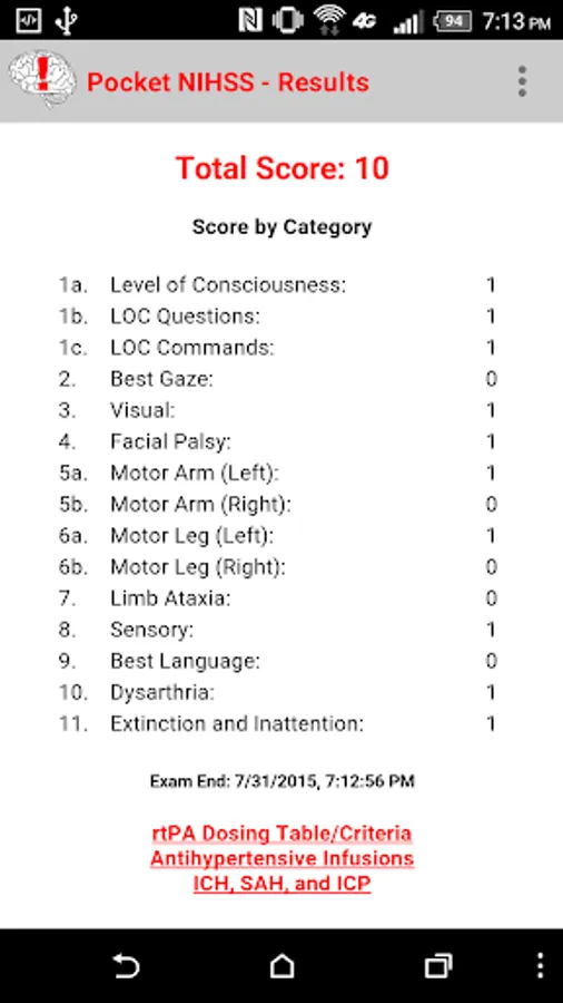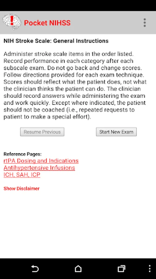 Medical Note: This app is meant to serve as a reference similar to the pocket stroke assessment cards issued to physicians, nurses, and students in neurology and/or the emergency department. It does not provide the proper training necessary to accurately perform the assessment, nor is it meant to replace official documentation/procedures required by any given medical facility. While best effort is made to ensure the accuracy of information contained within, no guarantee is made that this information is up to date or applicable to any given clinical situation.