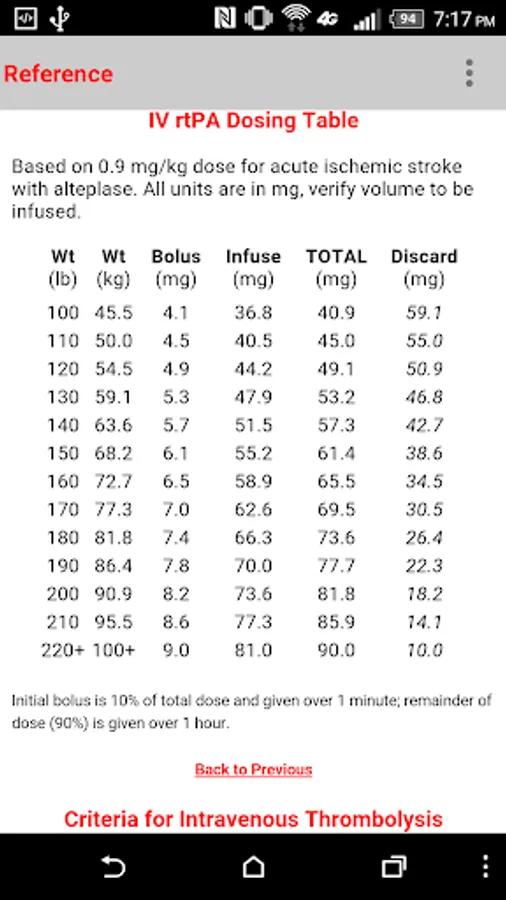 - Resources in v2+: tPA dosing table, with indications and contraindications, anti-hypertensive medication guide, and useful scales for stroke, ICH, SAH, and neurological emergencies