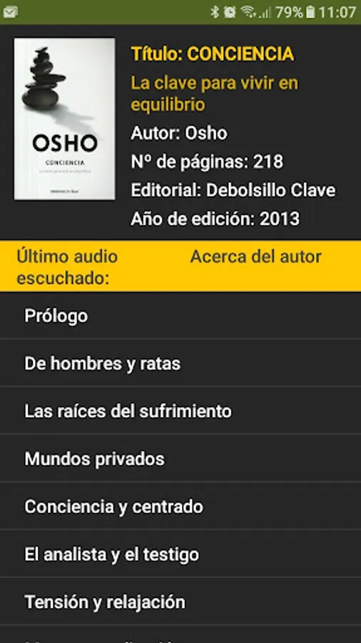 Audiobook Osho Awareness, contains the reading of all chapters of the book set with background music and includes a reminder of the last chapter heard. Enjoy it!