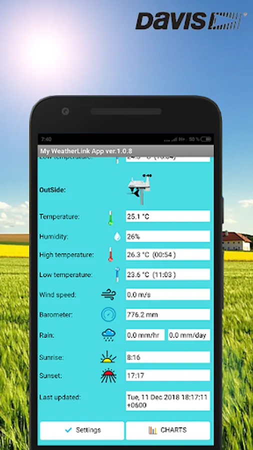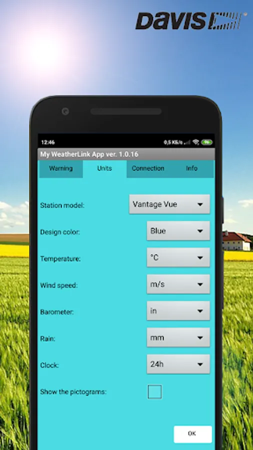 In the "Settings" window, you need to enter the Device ID (DID) and the password to access the page https://www.weatherlink.com/bulletin.