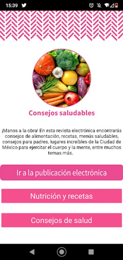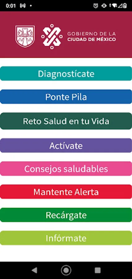 The mobile application is a support tool for the people of Mexico City in matters of health prevention. It consists of 7 sections: Diagnose yourself, Get Ready, Get Active, Healthy Tips, Stay Alert, Recharge, Get Informed.