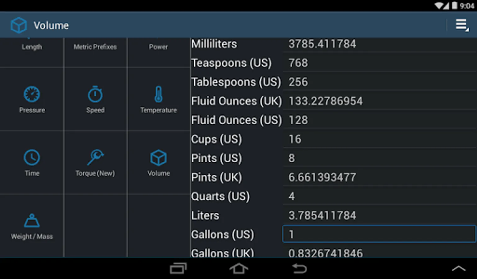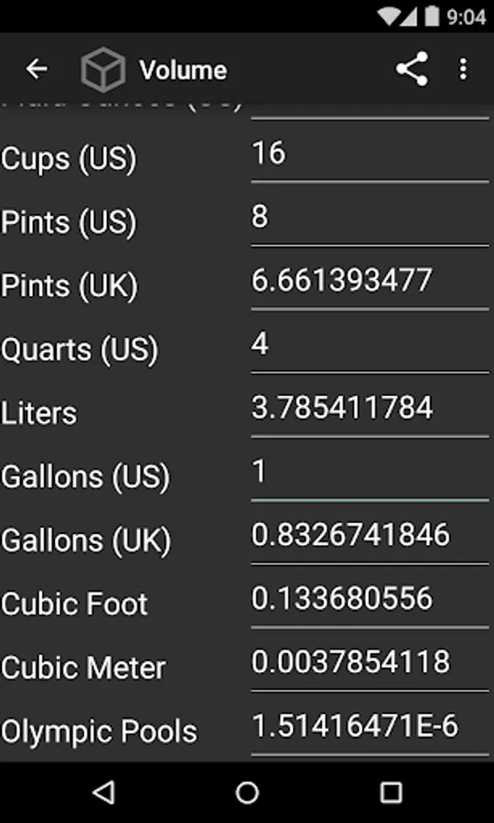 There is no pressing on an Enter or Next key. There is no scrolling through long lists trying to find the units. This intuitive app is designed in such a way that speed is your friend here. It has mainly the common units so that the unused excess doesn't get in the way.
