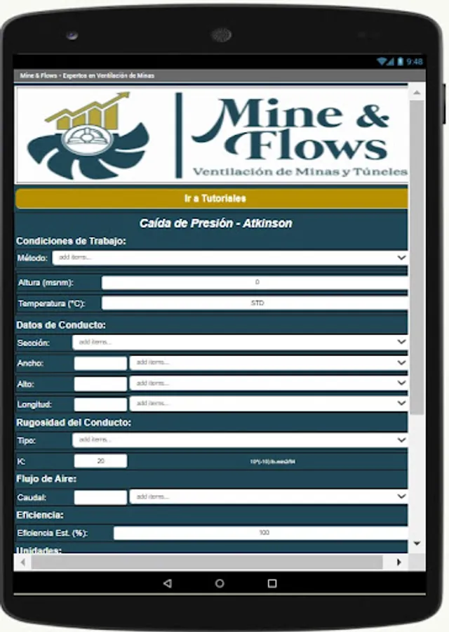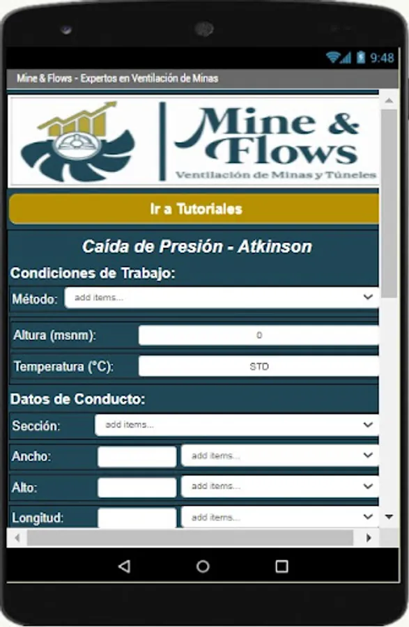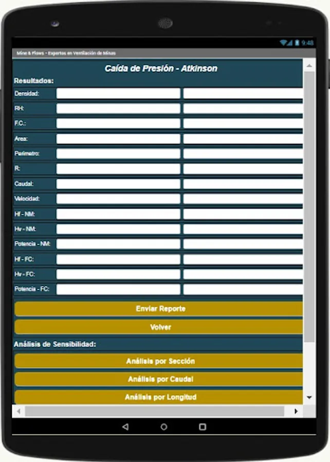 Application for the simple design of mining ventilation systems using Atkinson, it also allows sensitivity analysis.