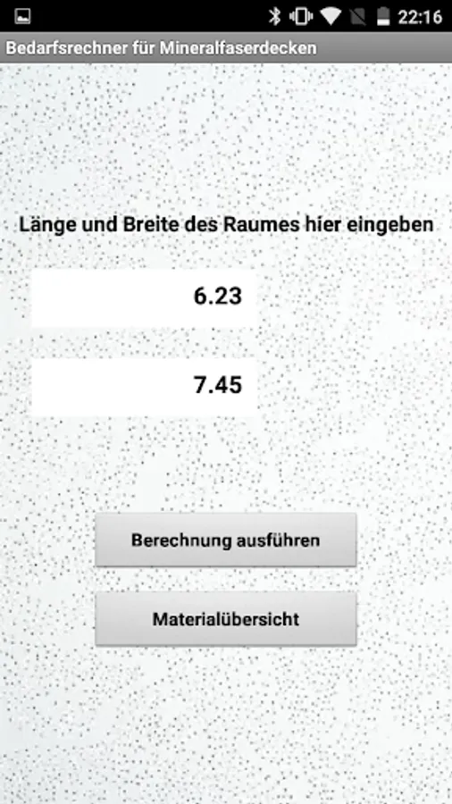 You just enter the dimensions of the room, length and width, and you get everything you need clearly displayed.