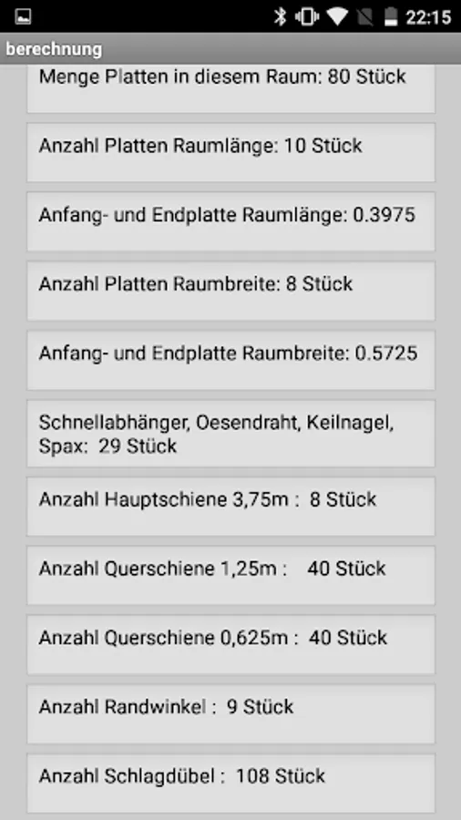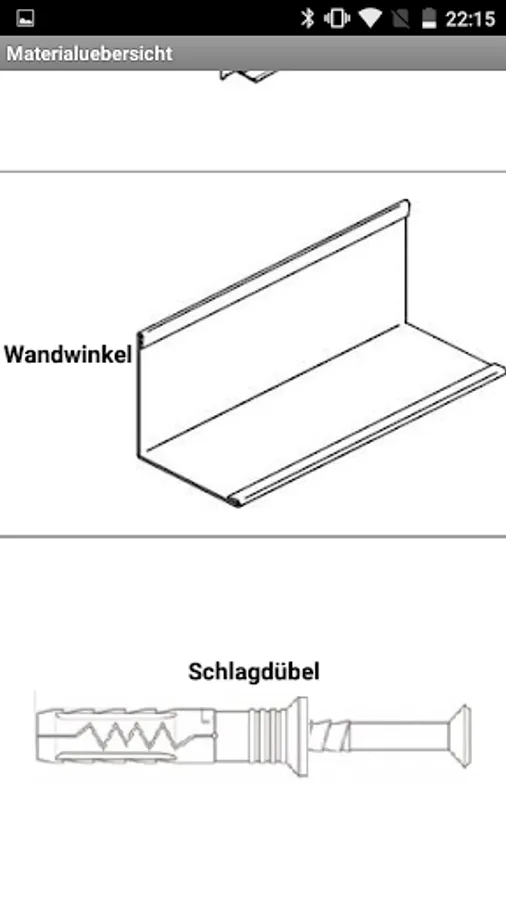 The amount of plates, the various rails, wall angles, hangers, screws, dowels, nails, etc. is displayed on your mobile phone in a matter of seconds.