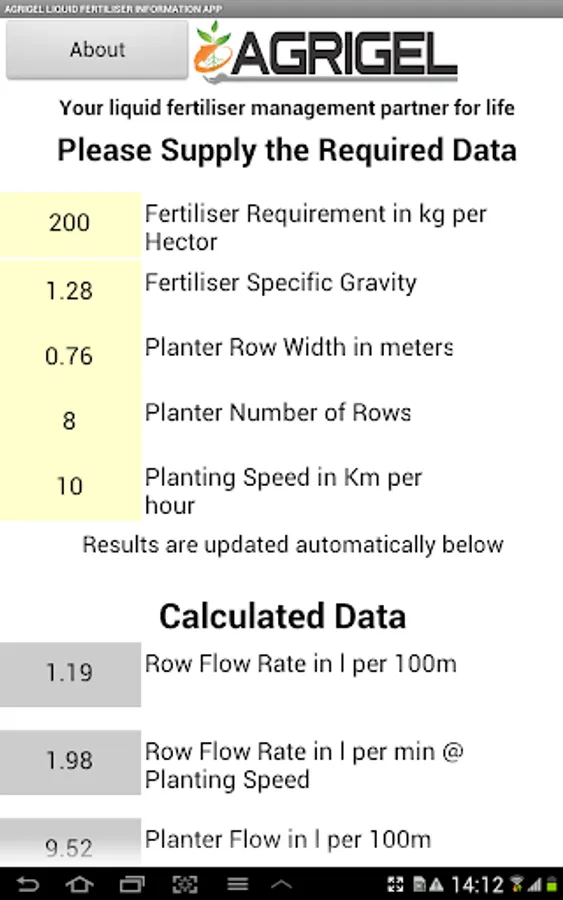 Farmers calculate your planter's liquid fertilizer application flow rates and other relevant planting information using this free app brought to you by AGRIGEL.