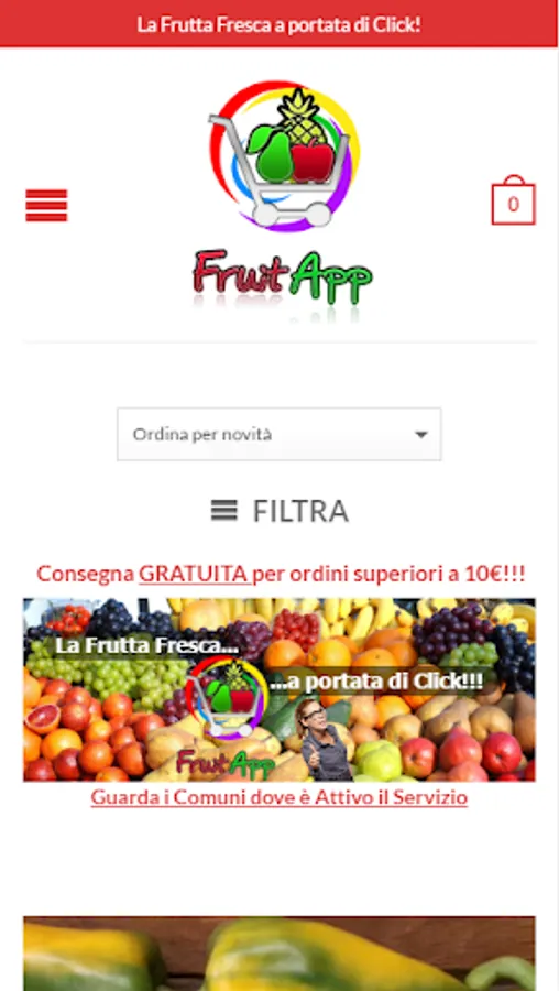 FruitApp is the first store dedicated entirely to the Near Fruit and related. And 'possible to look at the goods, order it and receive it comfortably at home. For orders over € 10 delivery is FREE!