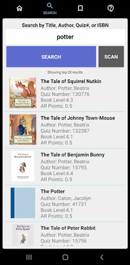Search by manually typing in the book title, author, isbn, or quiz#. Search results are limited to the top 20 results. If you cannot find it listed, try again, its there.