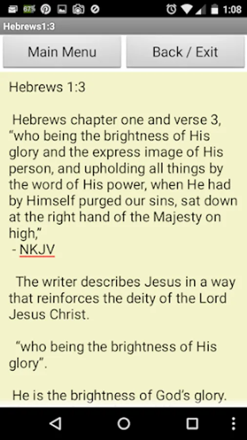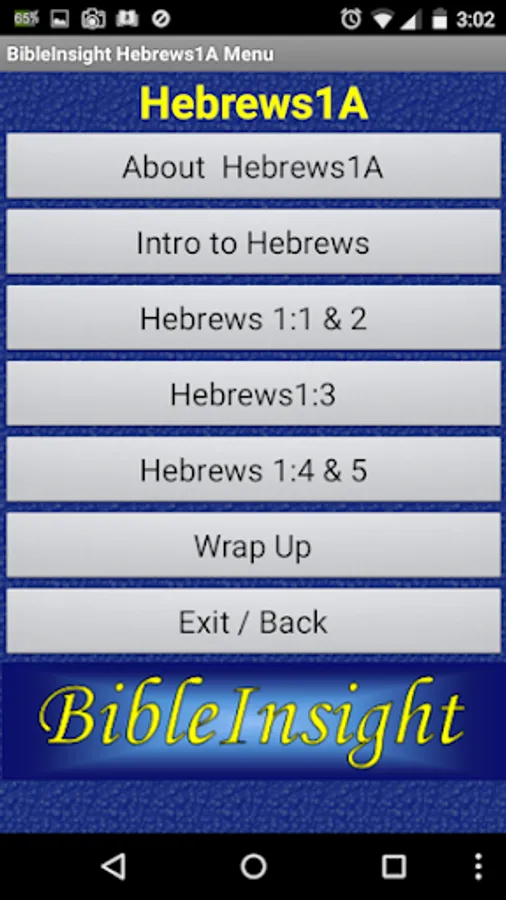 BibleInsight - Hebrews1A is an Android Application that helps people to better understand what the Bible says in the book of Hebrews Chapter 1 verses 1 through 5.