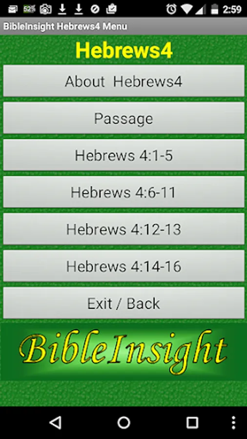 BibleInsight - Hebrews4 is an Android Application that helps people to better understand what the Bible says in the book of Hebrews Chapter 4 verses 1 through 16.
