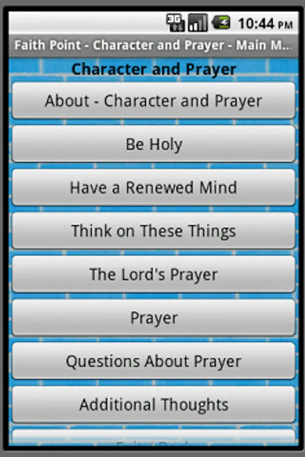 Full Description: Faith Point - Character is an Android Application that helps people to better understand what the Bible says about Christian Character and Prayer.