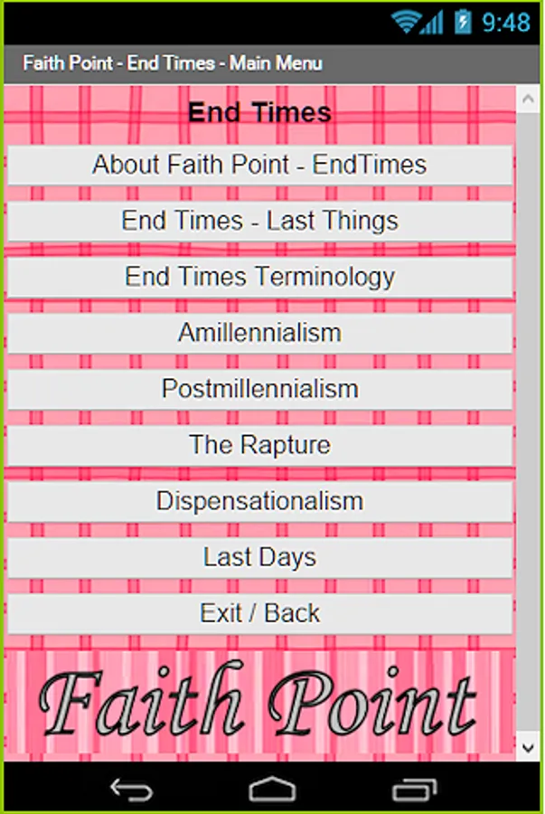 Faith Point - EndTimes is an Android Application that helps people to better understand the Bible and how to view the End Times.