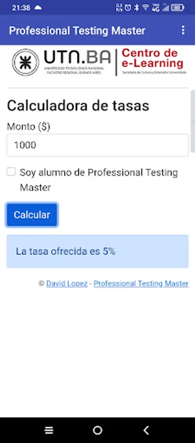 Sample application for the UTN-FRBA Professional Testing Master course taught by Mr. David Lopez
