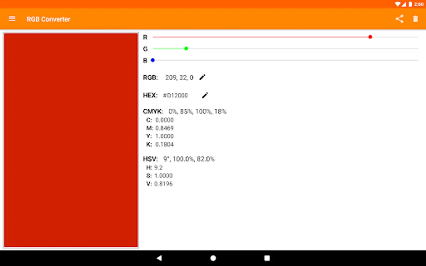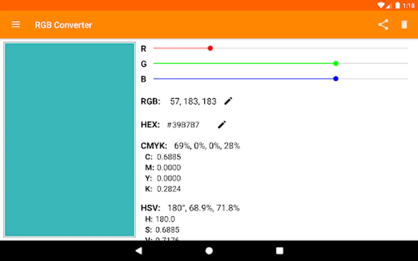 Once the color code has been obtained, it can be shared with other apps installed on the device.