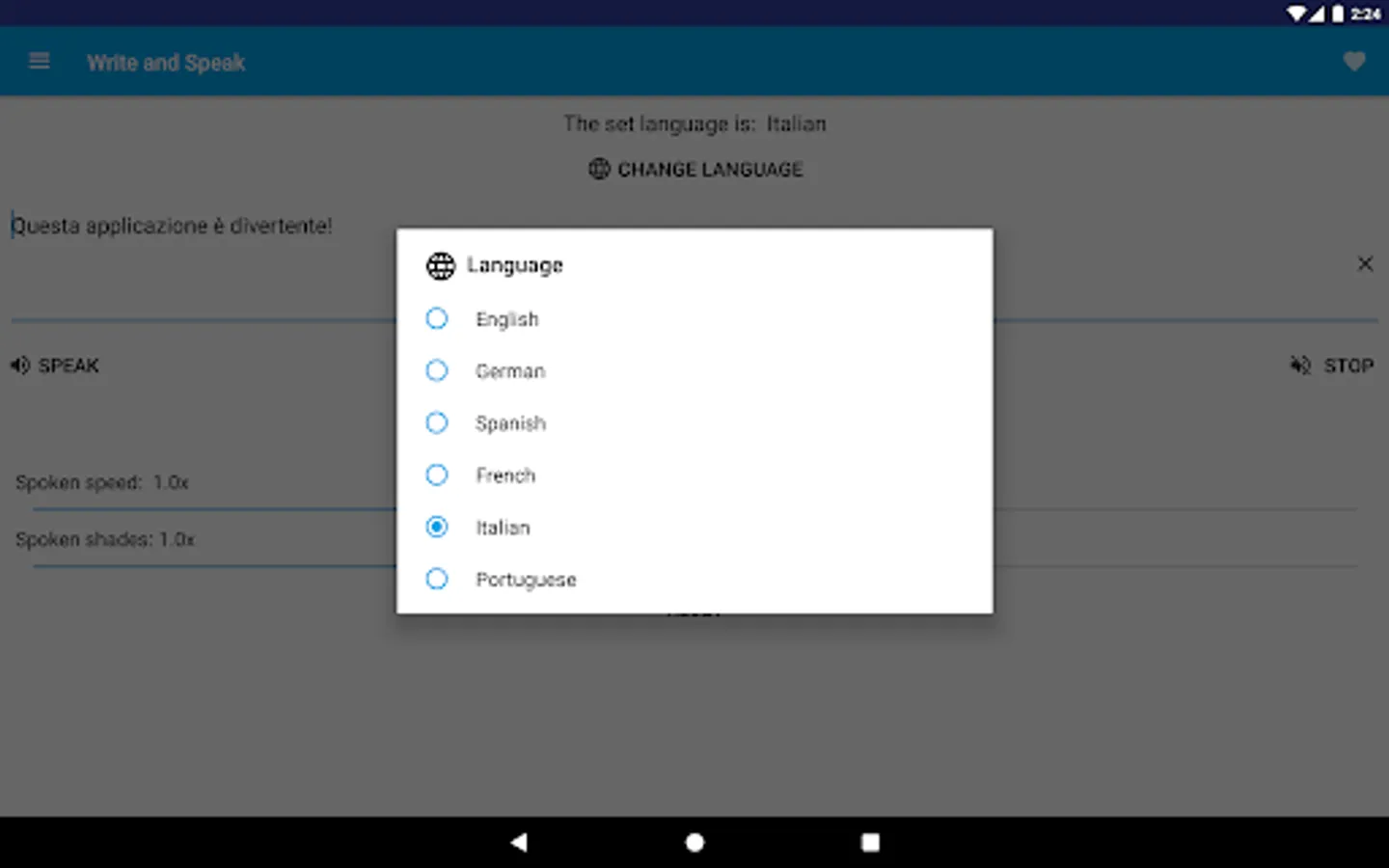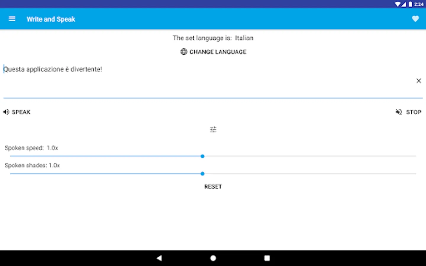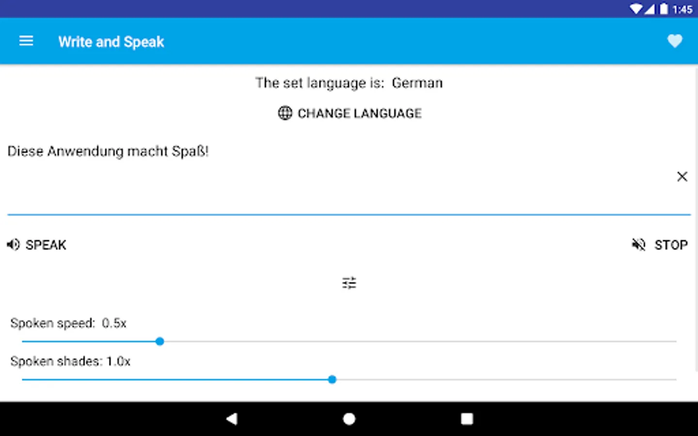 It allows you to enter a text and by pressing the speak key it is read according to the selected language. Fun and useful to know the pronunciation of a word or a phrase.