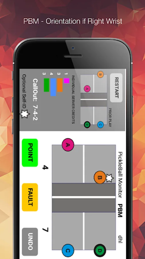 Before even stepping onto a Court, Beginners can practice games using the simple Point and Fault buttons to see firsthand how the written rules determine Player Positioning and Scoring. Animation of Player movements on the App Court allows time to see which Players are moving and to where.