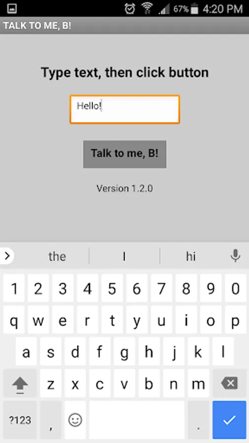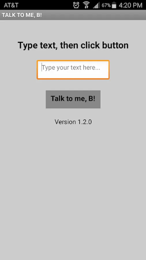 This is my first app. There really isn't much to it. It's just a quick and easy way to enter text and have your phone repeat whatever you type. No more, no less. You know what you are getting, so please don't give it a low rating. Is it useless? Yes! But you get what you pay for! Thanks!