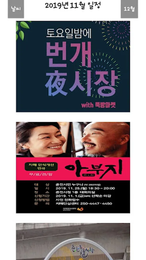 Chuncheon is the application of the current weather and this month, next month's festival information.