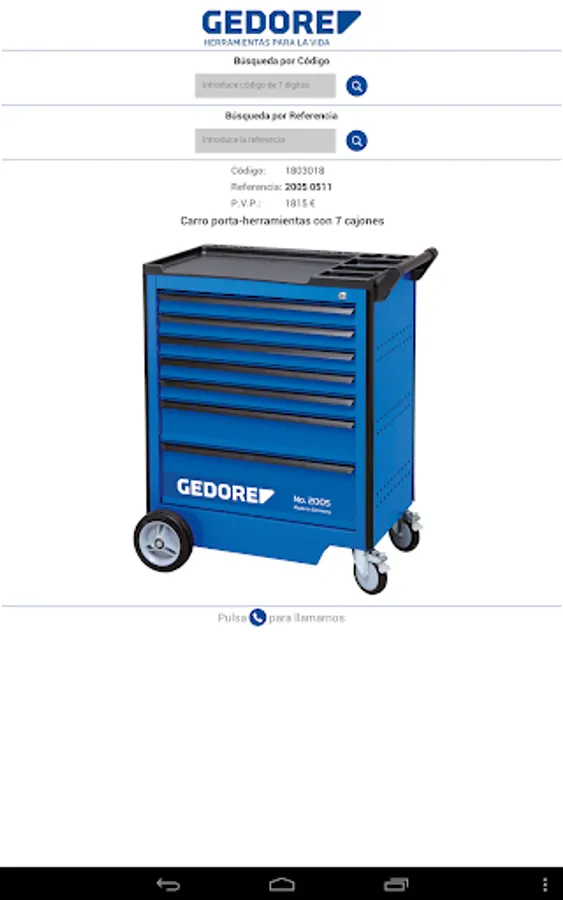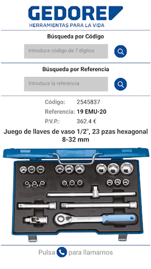 With this simple application you can find the description, recommended retail price (excl VAT) and photo tools Gedore, Gedore automotive, carolus and Ochsenkopf from its code or reference.