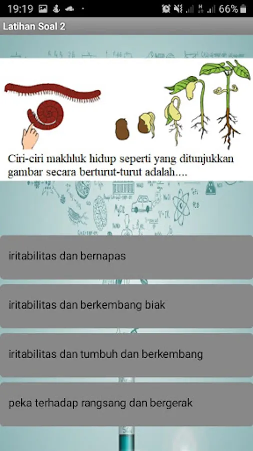 This application contains junior high school teaching materials about the characteristics of living things with exercise questions.