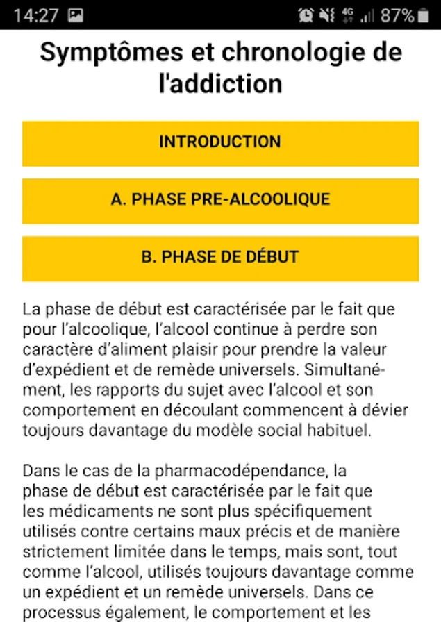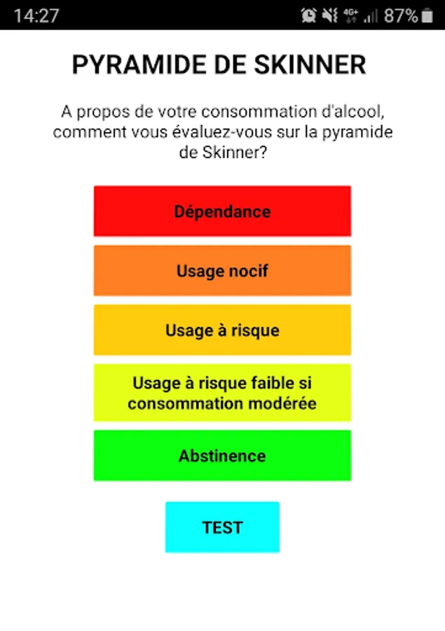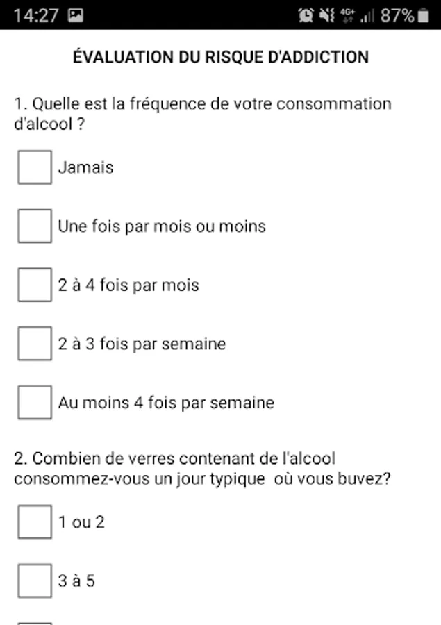 Test and symptomatology of alcohol and drug addiction