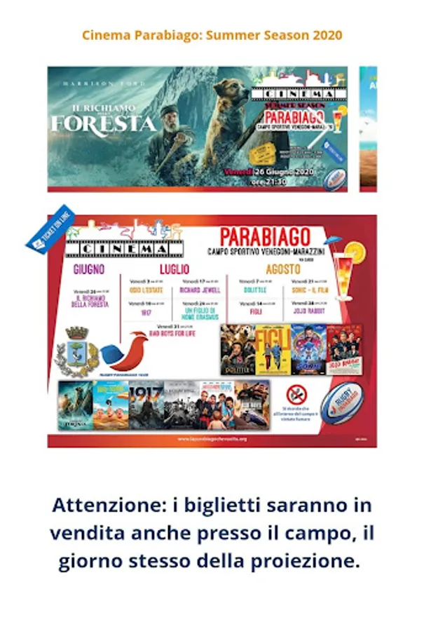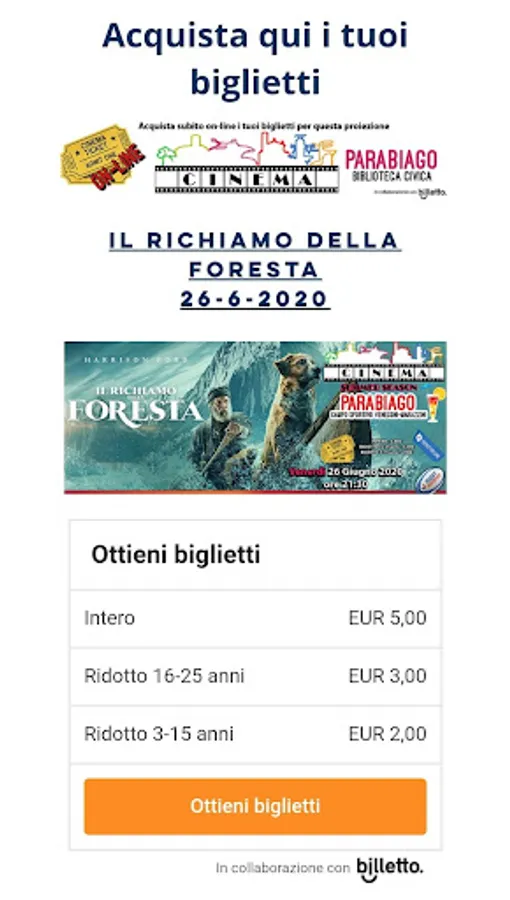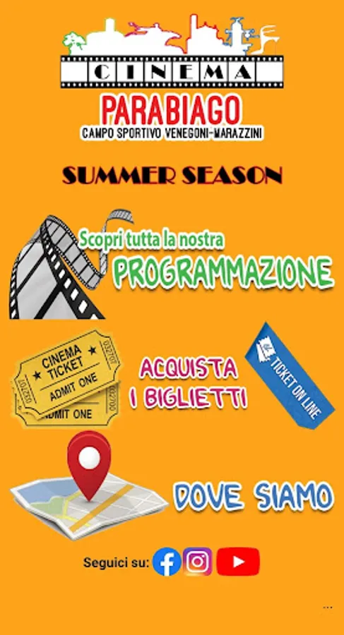 The application that allows you to see the programming, the trailers and buy the tickets for the Parabiago Cinema.