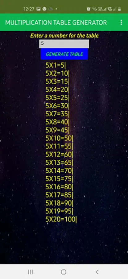 This App is created by Vaibhavi Jain. The App ask for a number and generates multiplication table of that number