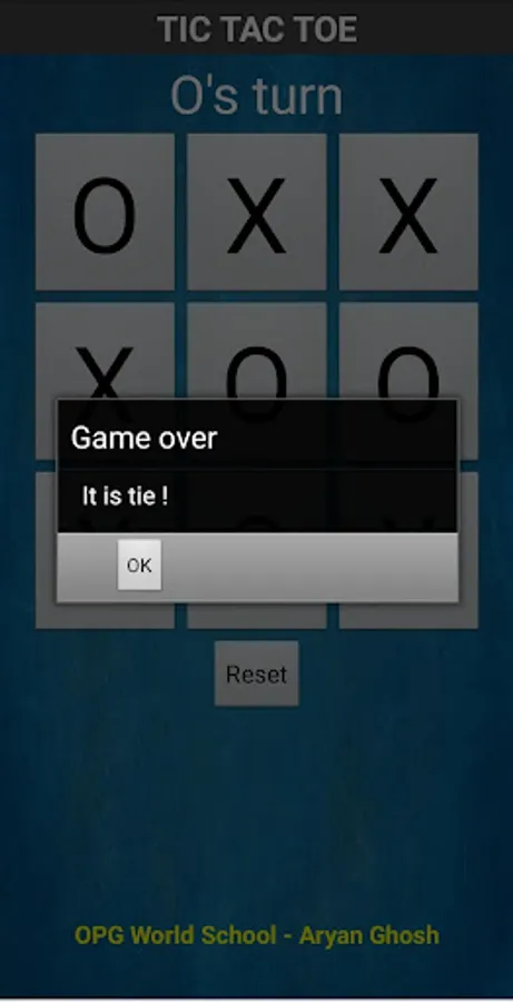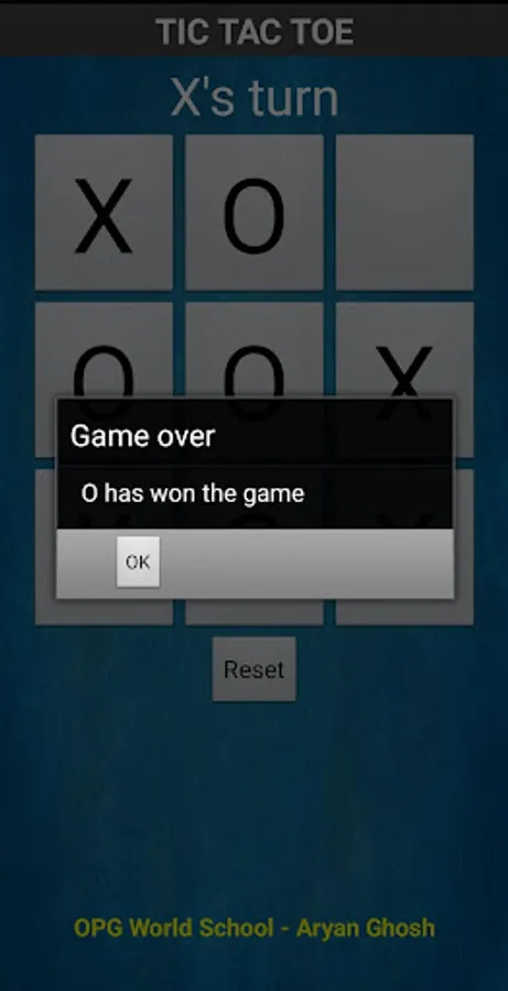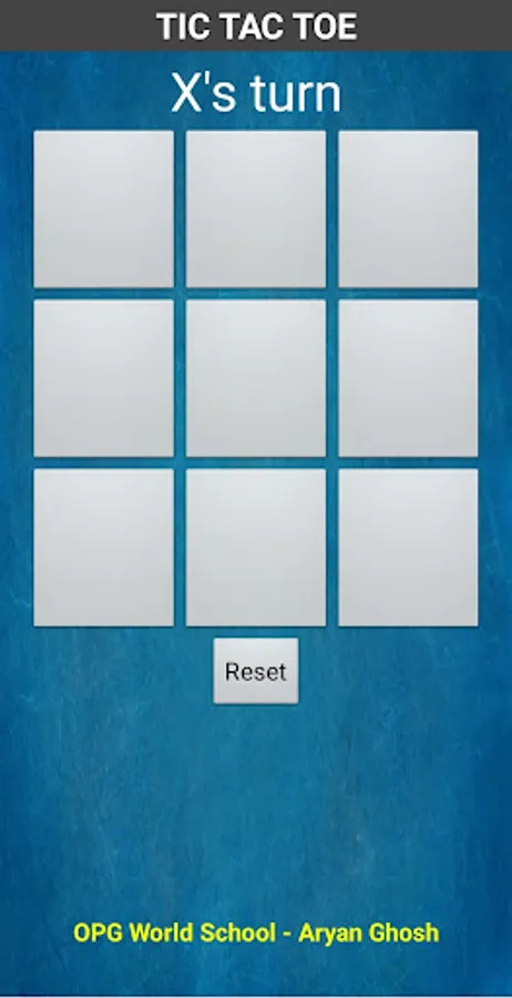 Tic Tac Toe Game, is made by Aryan Ghosh of OPG World School trained by Raspbians.com.