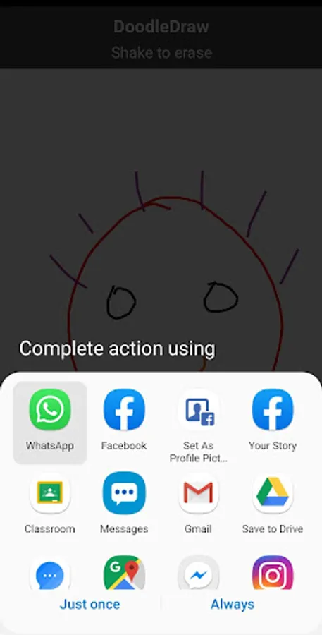 This app allows you to draw whatever you wish. You could choose various color combinations. You can shake the phone to clear the screen. Once the doodle is completed, you can share it with anybody.