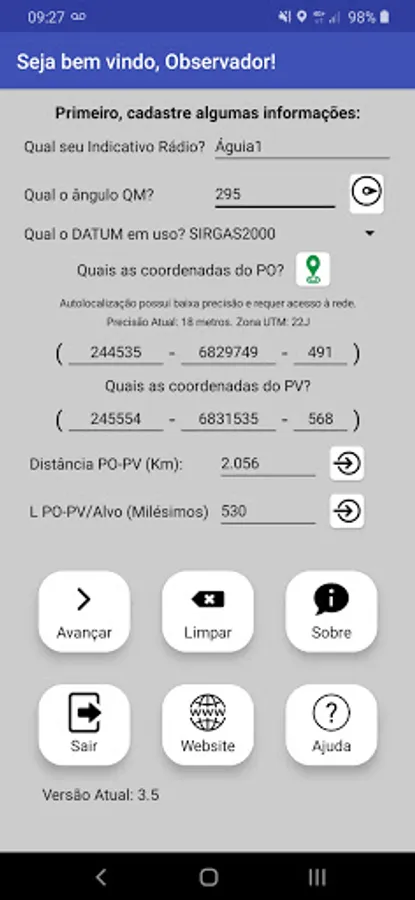 - Auto location of the PO with the choice of the Datum of the Topographic Map that is being used;