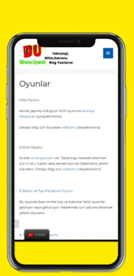 Direncuyanik.com can be accessed directly through the application. Direncuyanik.com is an online platform where science, technology and my blog posts are shared, games I have developed and cartoons I have made. When you register to the application, you can message other active users. I add new articles to my website every week. My articles are usually about science and technological developments. 8 games and cartoons in my application were prepared by Resistance Uyanık. There is usually 1 game every month. You can use this application to give feedback to the games and cartoons I have developed.