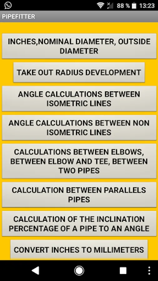 In it you will find all the pipe measures in inches, nominal diameter and outside diameter in millimeters, short and long radius take out as its development, calculations of angles between isometric lines, between non-isometric lines,