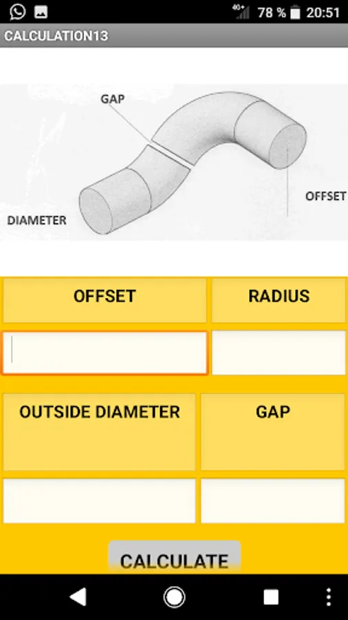 calculation of the percentage of inclination of the pipe at an angle and conversion between inches and millimeters.