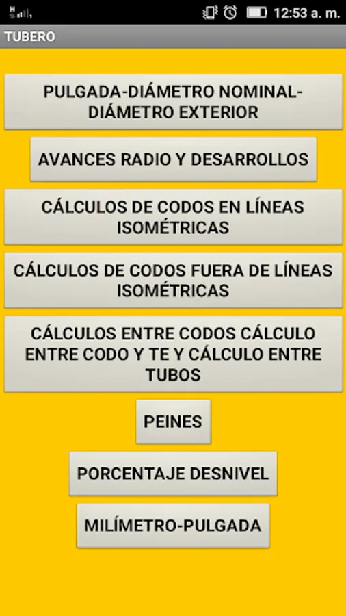 Here you will find all pipe sizes in inches nominal diameter and outer diameter, advances shorthaul and longhaul their development, calculations of angles between isometric lines, including non-isometric lines, including elbows, between elbow and you, between two tubes and inclinations of the pipes, combs calculations, calculating the percentage of pipe inclination angle and conversion between inches and millimeters.