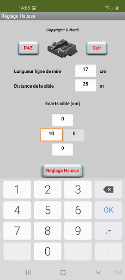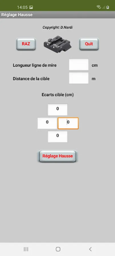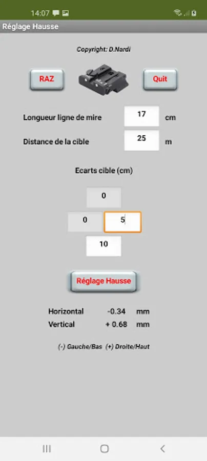 the application calculates the offset to be applied upward based on the deviations (horizontal and vertical) of the impacts from the center of the target.