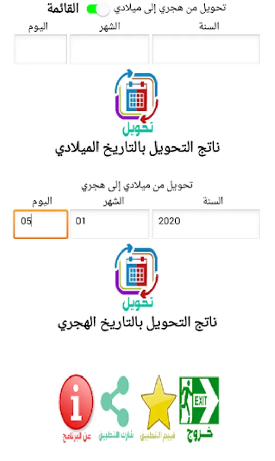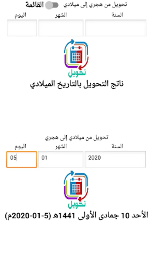The "Date Converter between Gregorian and Hijri" application provides a unique and unique experience for users who want to convert dates from the Gregorian calendar to the Hijri calendar and vice versa with ease and ease. Thanks to its simple and intuitive user interface, users of all ages and backgrounds can convert dates with just one click.
