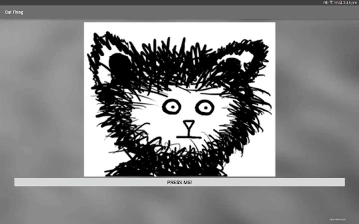 Cat Thing allows you to hear my interpretation of what a cat sounds like at the press of a button, it's just that easy! Press it as many times as you like and enjoy a soothing cat noise. Simply press the "Press Me!" button.
