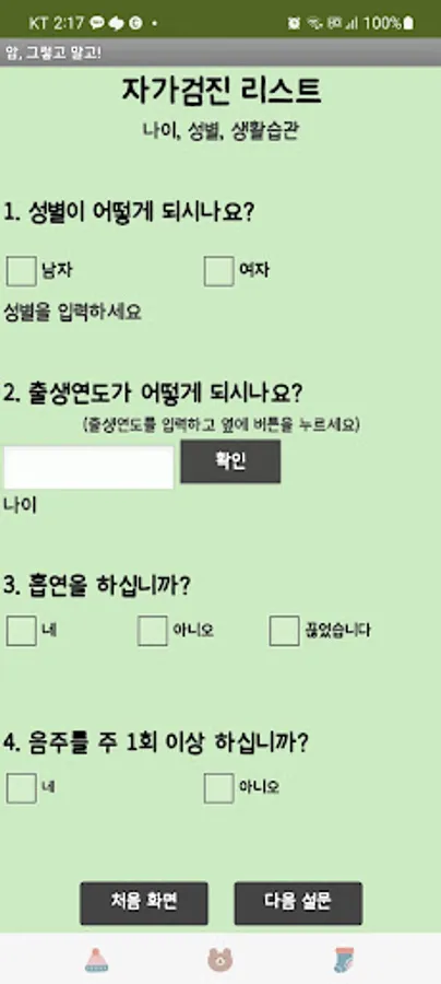 Here is an app that allows you to check what tests can be done when you go to the hospital with a few simple clicks. You can also save and load.